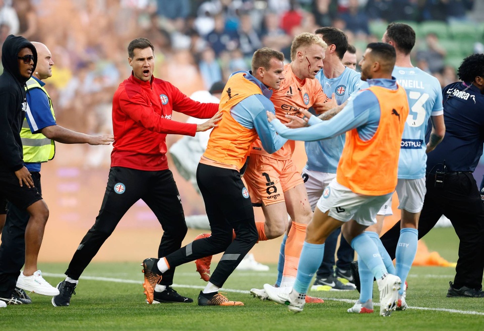 Khung cảnh hỗn loạn hiếm thấy xảy ra ở giải vô địch quốc gia Australia (A.League), trong trận derby thành phố Melbourne. Nhóm người hâm mộ Melbourne Victory tràn xuống sân tấn công thủ môn Tom Glover của Melbourne City khi biểu tình phản đối ban tổ chức biến thành bạo lực.