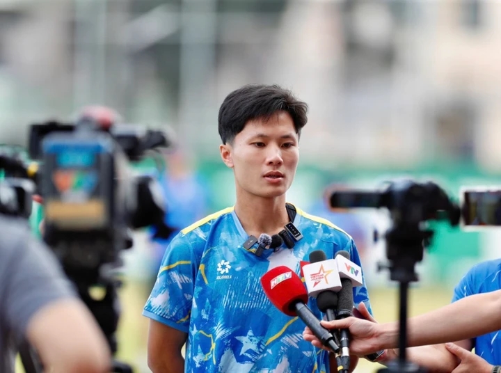 Nguyễn Thái Quốc Cường chia sẻ với truyền thông. Ảnh: VFF.Trong trận tranh hạng Ba giàu cảm xúc, U23 Việt Nam đã khiến người hâm mộ vỡ òa khi thực hiện thành công 100% các lượt sút luân lưu để vượt qua đối thủ mạnh U23 Hàn Quốc. Là một trong 7 cầu thủ dũng cảm đứng trước chấm 11m, Nguyễn Thái Quốc Cường – em họ của danh thủ Công Phượng – đã hé lộ bí mật đằng sau sự thành công này.